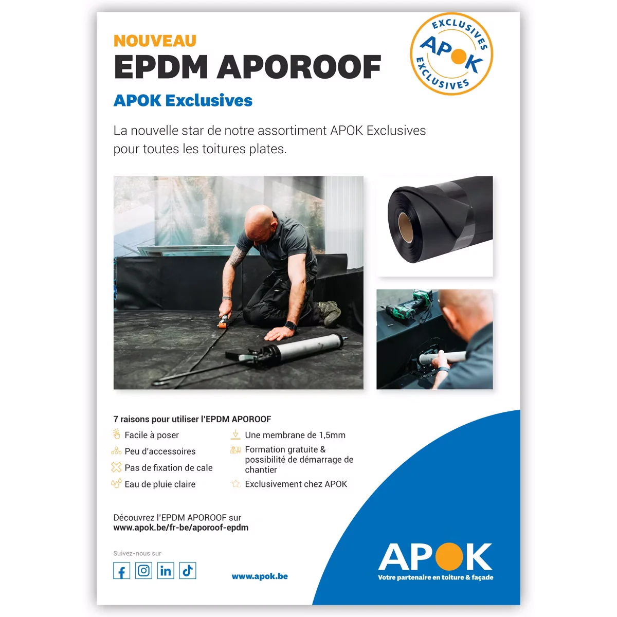 Founded over 60 years ago, the Belgian company APOK offers roofing and cladding specialists a complete range of products and services, both through their branches and online. With no fewer than 33 branches, they are the number one player in the Belgian roofing and cladding materials market