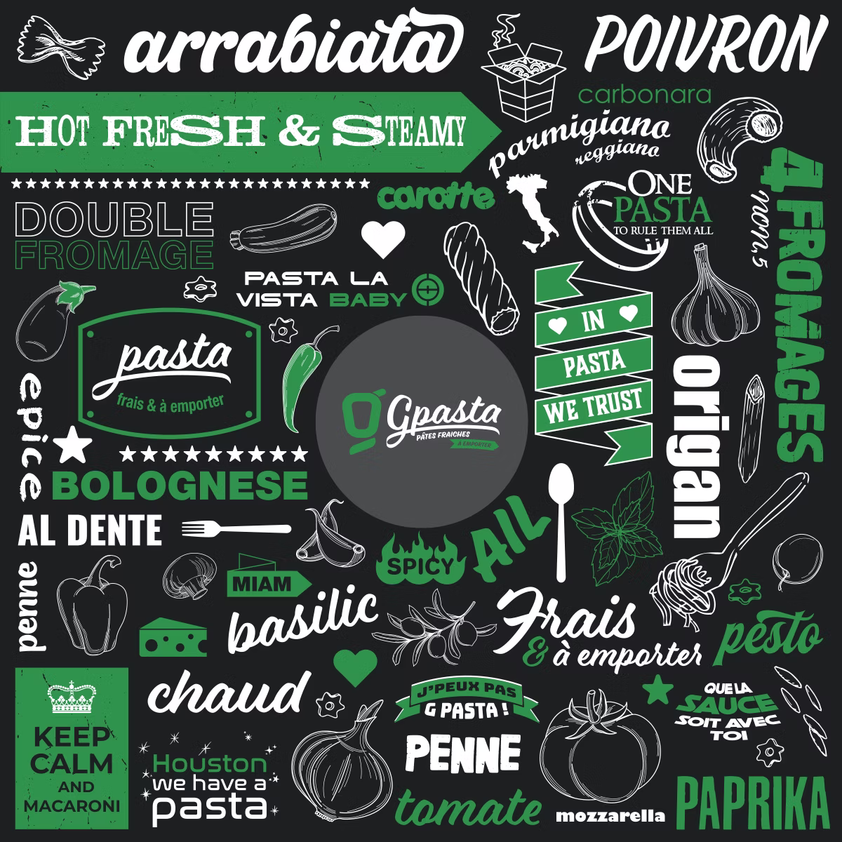 GPasta m’a confié la réalisation du branding (logo, charte graphique, guideline) pour une nouvelle marque de franchise street food spécialisé dans les pâtes fraiches à emporter.