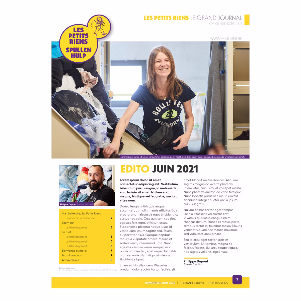Création de deux journaux de communication interne pour Les Petits Riens, l’un imprimé et trimestriel, l’autre numérique (PDF) et mensuel.