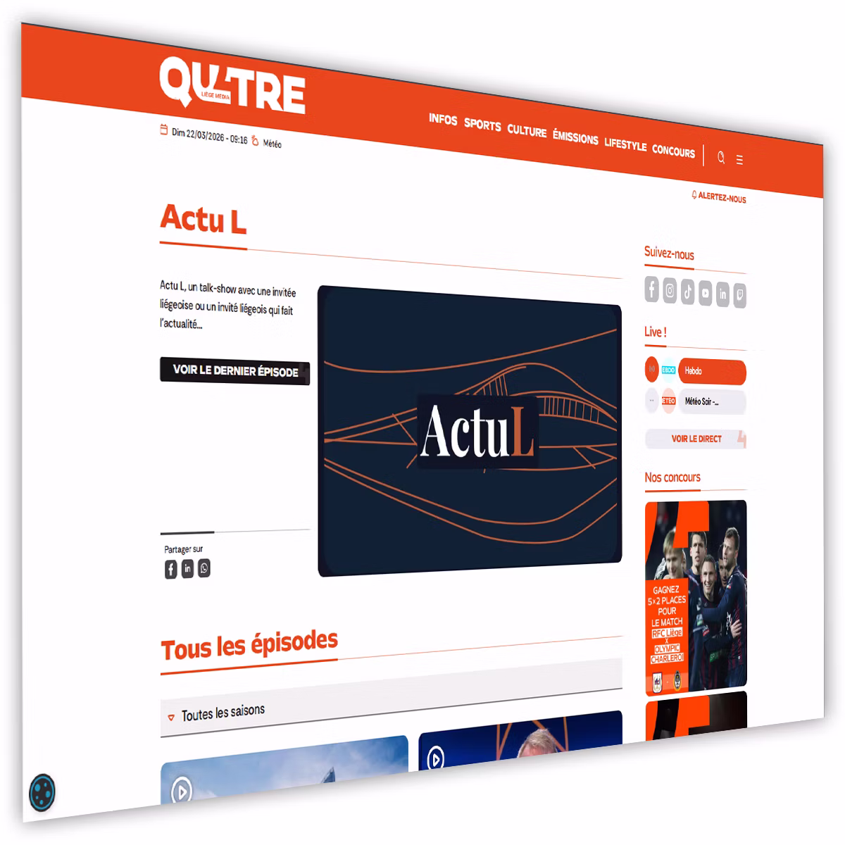 Qu4tre Liège Média, anciennement RTC Télé Liège, a opéré un changement d’image en septembre 2024, en changeant de nom et de branding, et en rajeunissant son image. Dans la continuité de ce changement, un nouveau site web devait être mis en place.